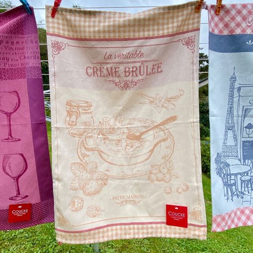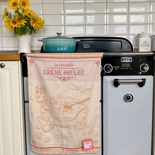 Unser Geschirrtuch „Crème brûlée“ bringt die unvergleichliche süße französische Verlockung direkt zu dir nach Hause.