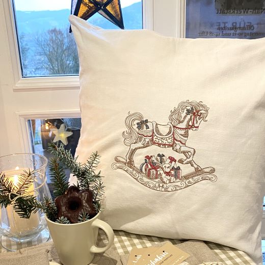 Die hochwertige Stickerei auf antikem Leinen bringt einzigartigen weihnachtlichen Vintage – Charme in deine Räume. Mit solchen kuscheligen Kissen verwandelst du jeden Ort ganz einfach in eine gemütliche und weihnachtlich festliche Wohlfühloase mit Landhausfeeling.