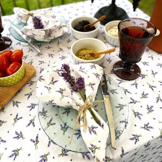 Gibt es etwas schöneres, als ein schmackhaftes Essen, liebevoll serviert auf einem wunderschön gedeckten Tisch? Mit den Lavendel Stoffservietten fängst du den Zauber des französischen Sommertages am Lavendelfeld ein und bringt die Farben, die Düfte und die Wärme der Provence auf deinen Tisch.