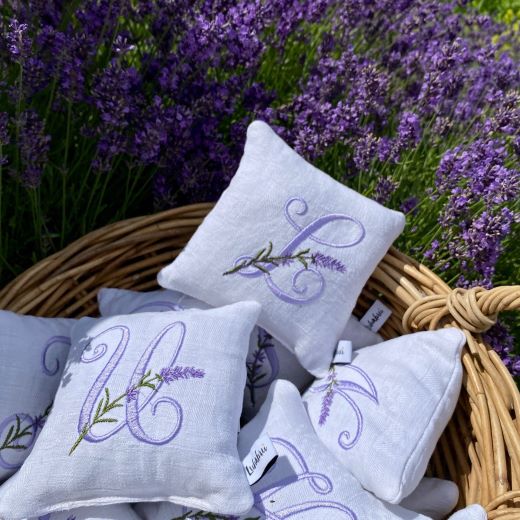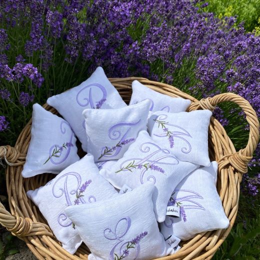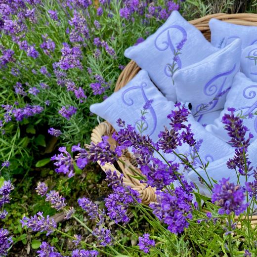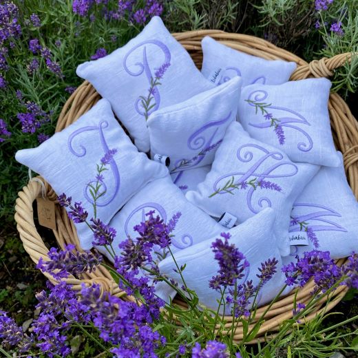 Gehe auf eine imaginäre Reise in die Provence mit unserem duftenden Lavendelkissen mit individuellem Lavendel-Monogramm!