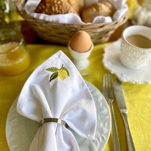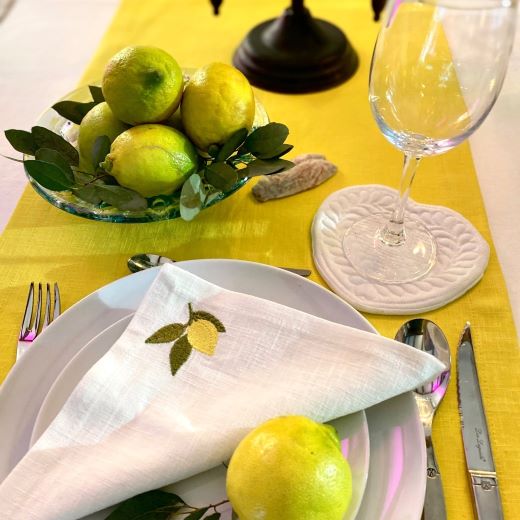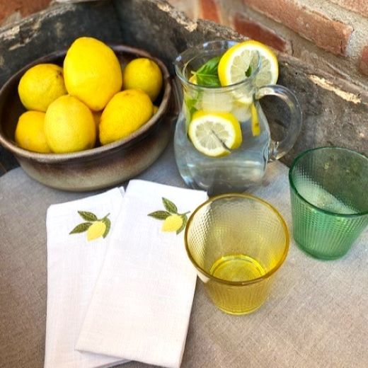 Mit diesen handgefertigten Leinenservietten kannst du die Zitronendekoration das ganze Jahr über genießen und deine Mahlzeiten im mediterranen Stil gestalten.