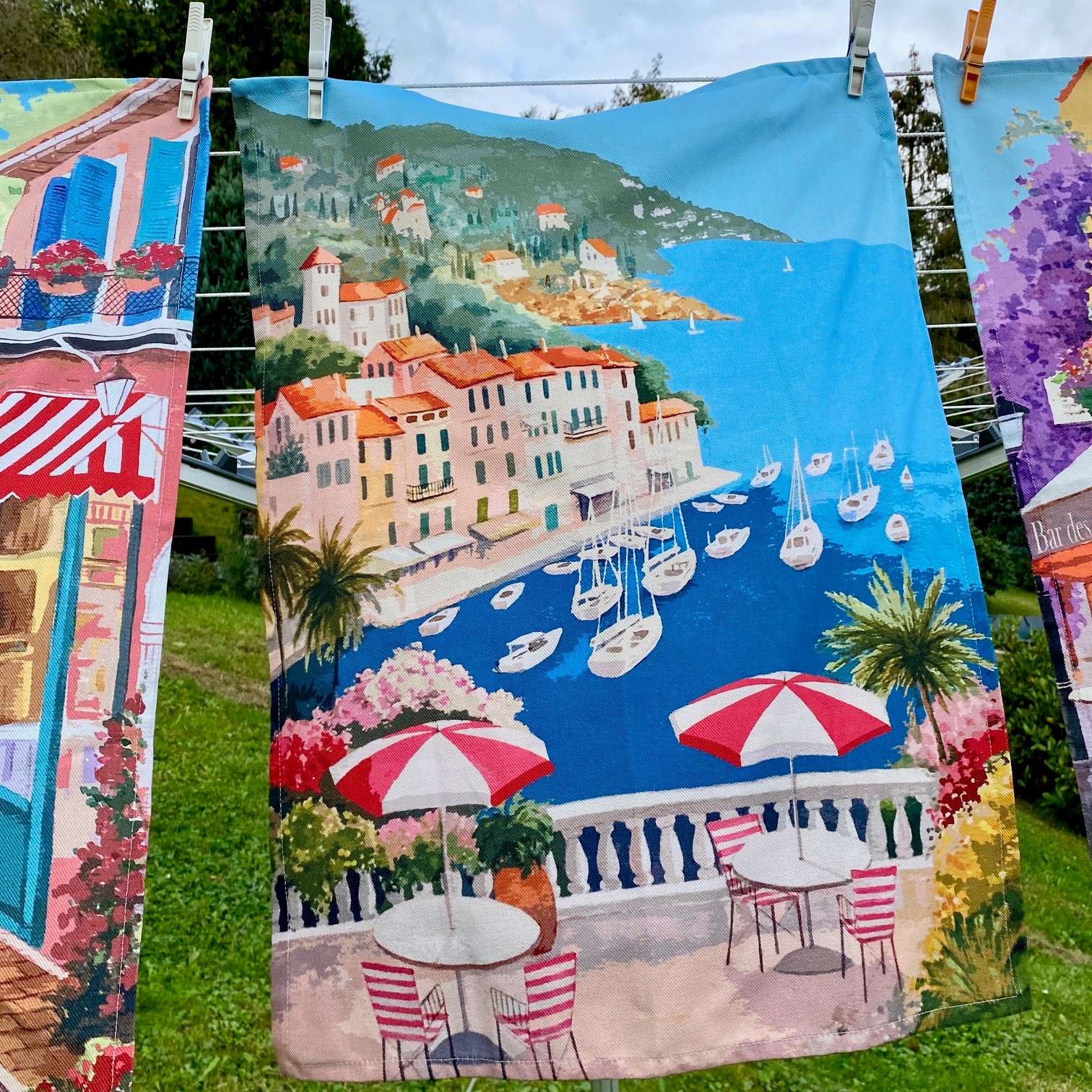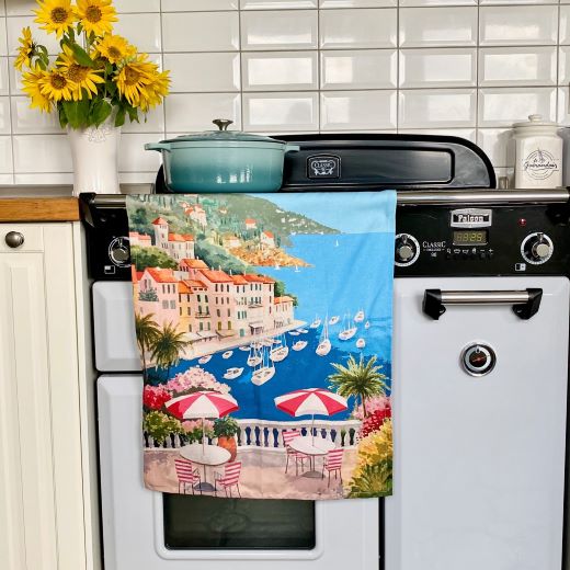 Ob beim Kochen oder einfach als schönes Accessoire – mit diesem Geschirrtuch spürst du die Sonne und die Leichtigkeit der französischen Riviera.