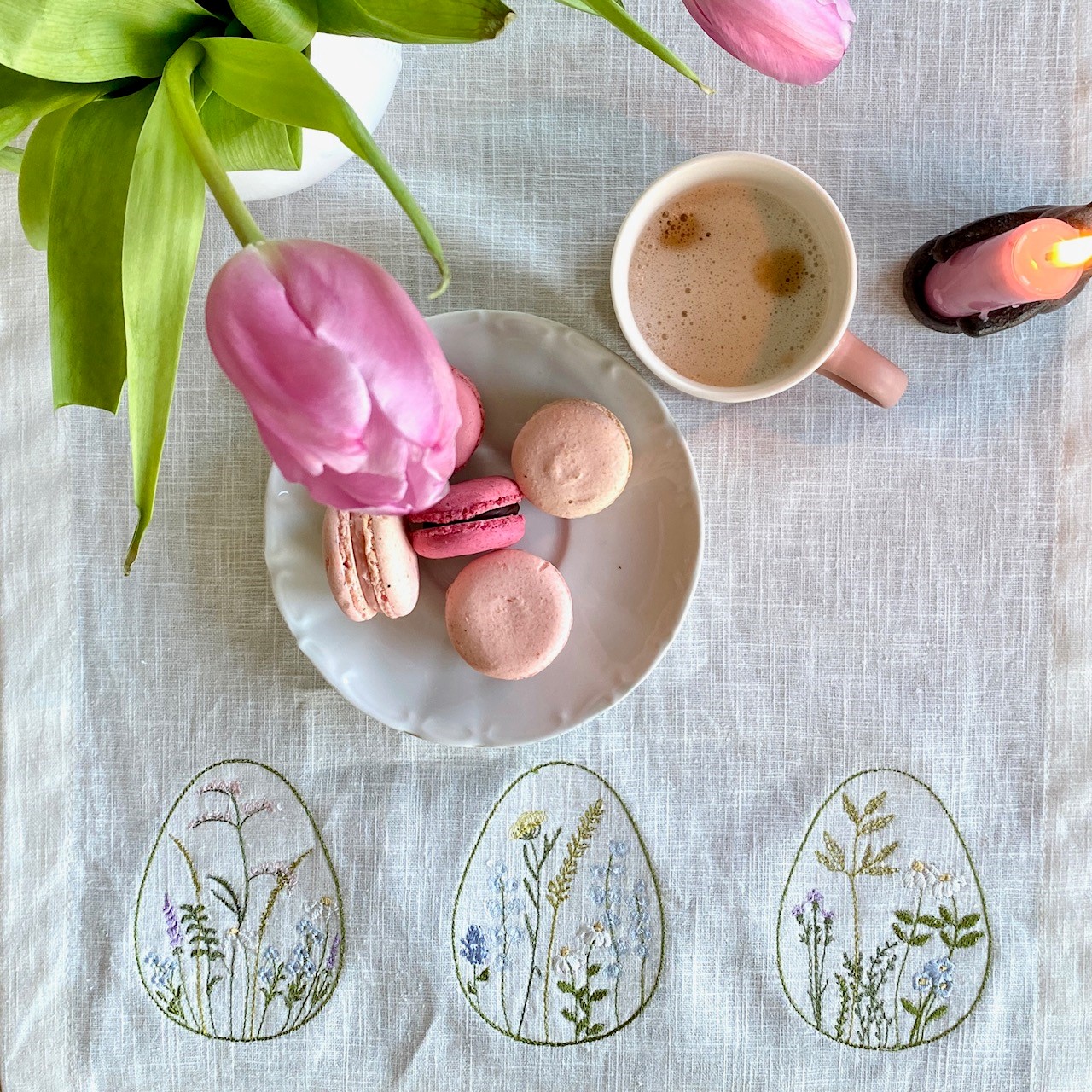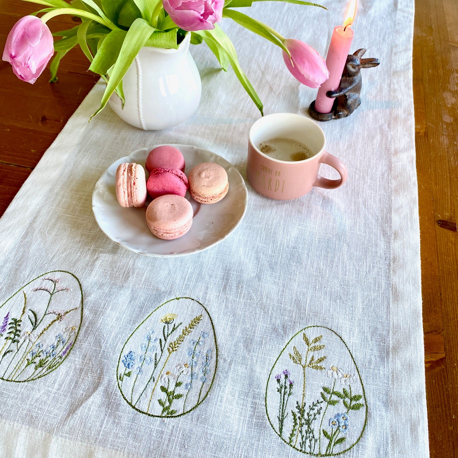 Mit diesem Tischläufer kannst du dir einen frühlingsfrischen Akzent im natürlichen Landhausstil auf deinen Tisch holen.