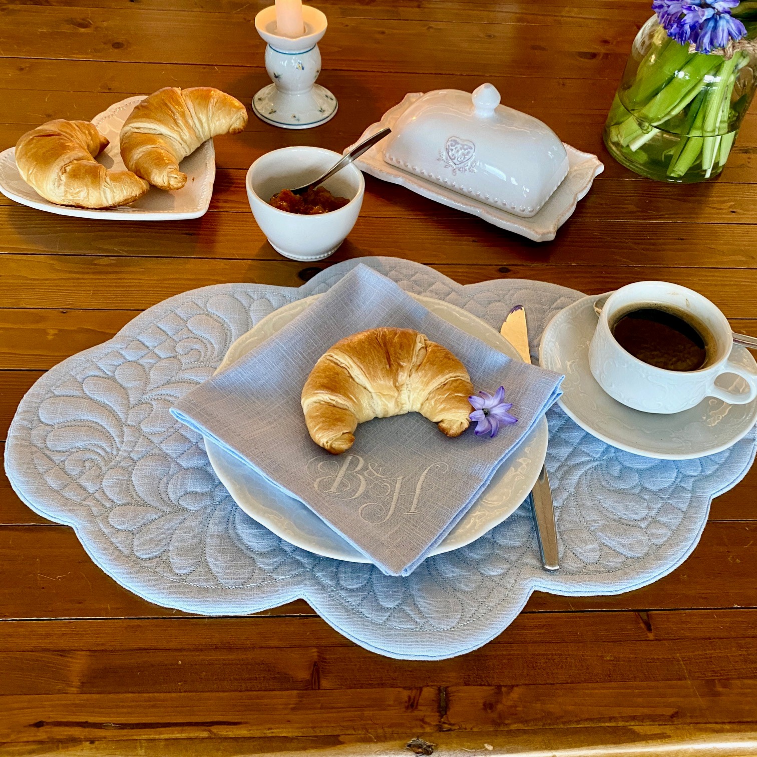 Die hochwertig bestickten, einfarbigen Leinenstoffe sorgen schnell und einfach für eine gemütliche Atmosphäre wie in Frankreich.