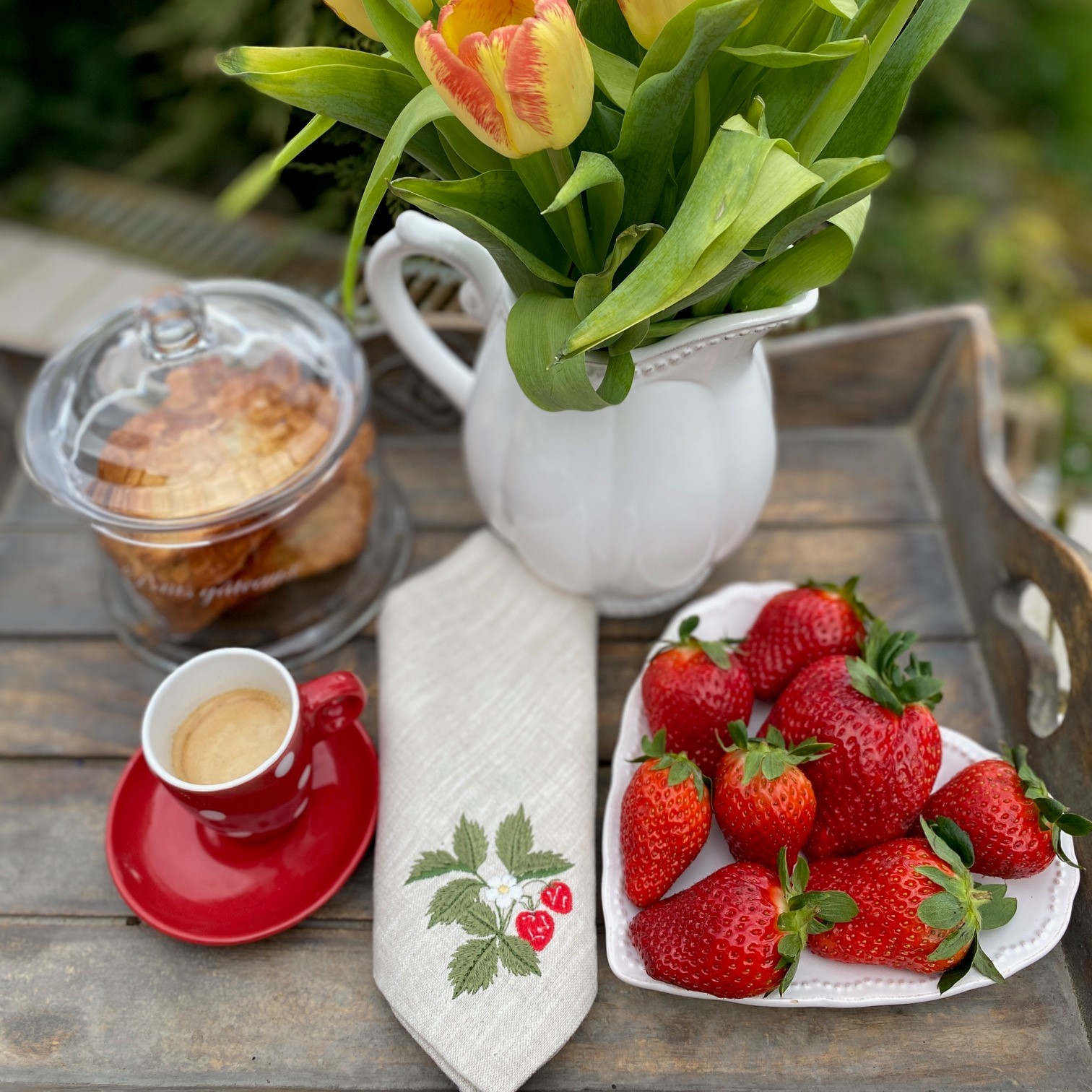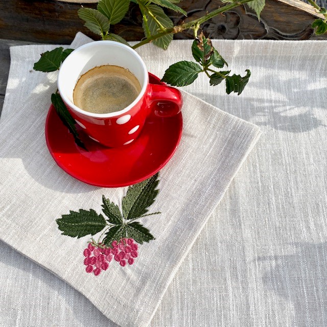 Ich habe für dich diese reizenden Früchte auf Sets gestickt und diese Erinnerungen in Stoff festgehalten. So kannst du die leckeren Beeren jeden Tag bei dir Zuhause genießen und einen Hauch vom sommerlichen Landhausstil auf Deinen Esstisch bringen.
