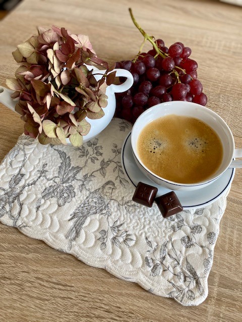 Mit gequilteten Untersetzern aus Leinen holst du französischen Flair in dein Zuhause und schützt die Möbel auf charmante Weise vor Verschmutzungen.